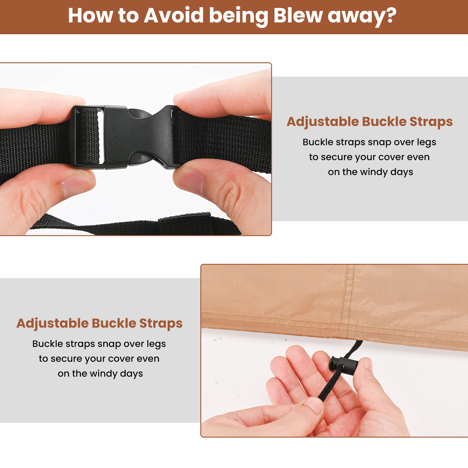 - Windproof Design: There are 4 adjustable buckle straps and 2 elastic hem cords of each chair cover for a secure and snug fit, protecting against strong winds and rain.